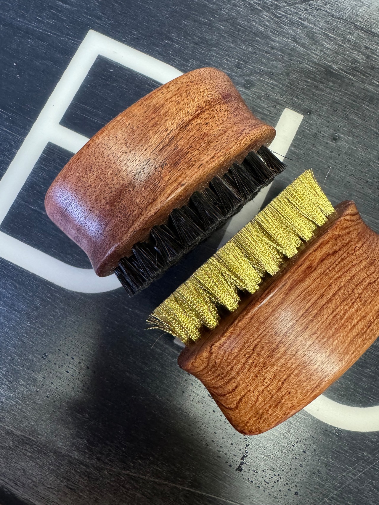 ワックス後のスクレーピング後仕上げのホース(馬毛)ブラシ前の余分なワックス除去